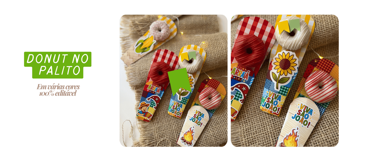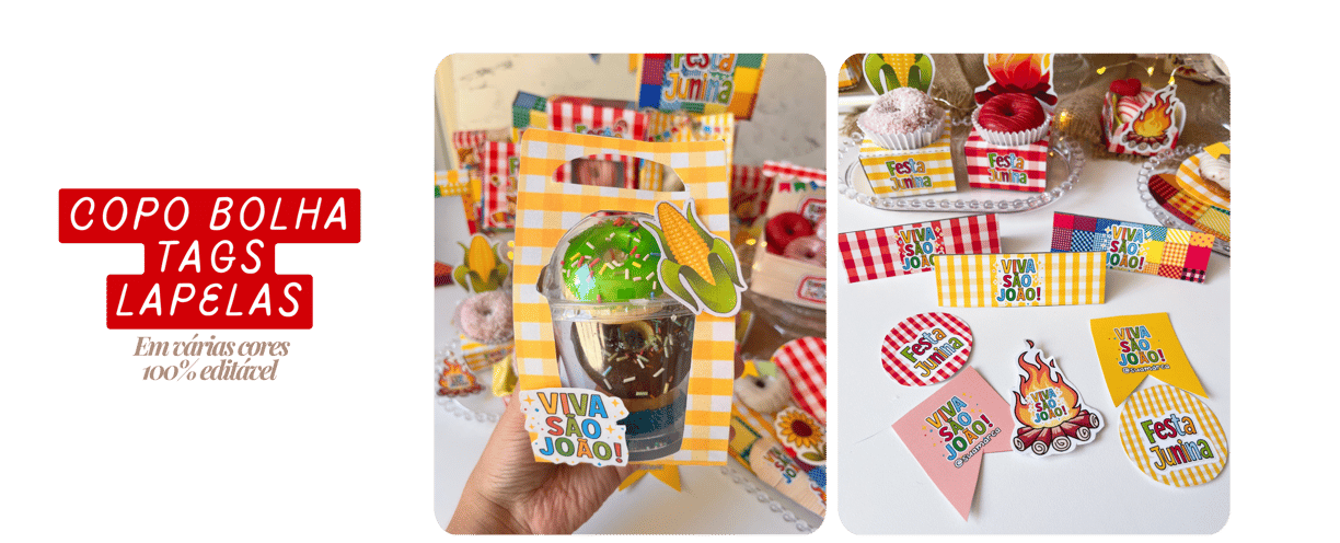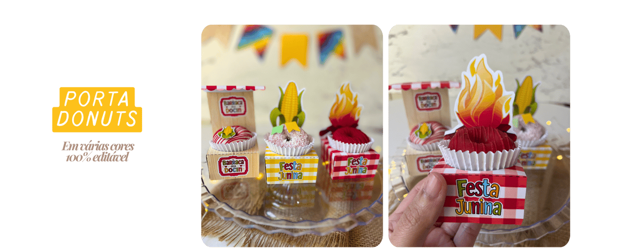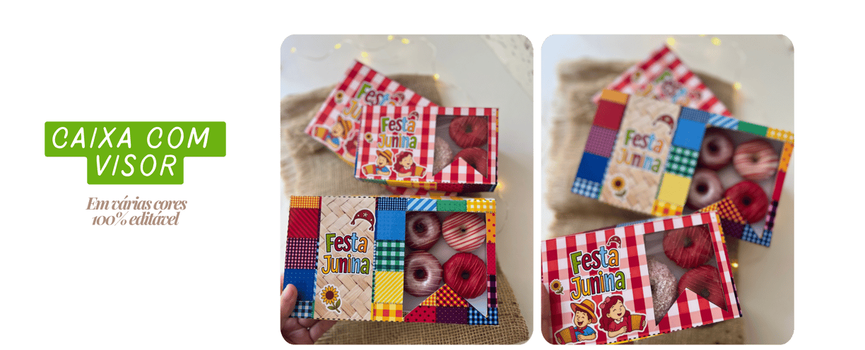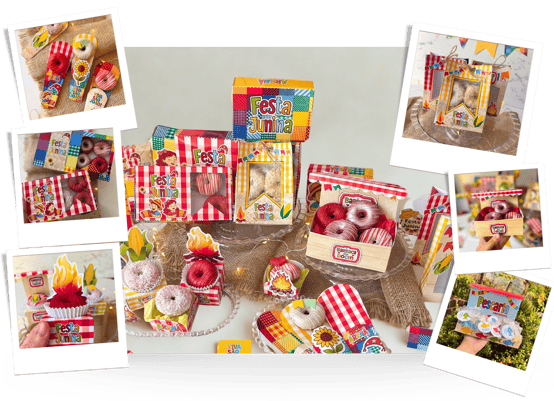 Kit de Moldes e Artes para Embalagens Juninas, perfeito para valorizar seus produtos com um toque caipira, criativo e cheio de charme! Designs temáticos exclusivos que trazem o clima de arraial para seus doces.